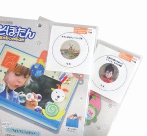 『あそぼーたんフォトフレームキット』は『花束』『ケーキ』『お手紙』の3種類。親子で一緒にモノづくりができる体験型商品として人気だ(写真右3枚)