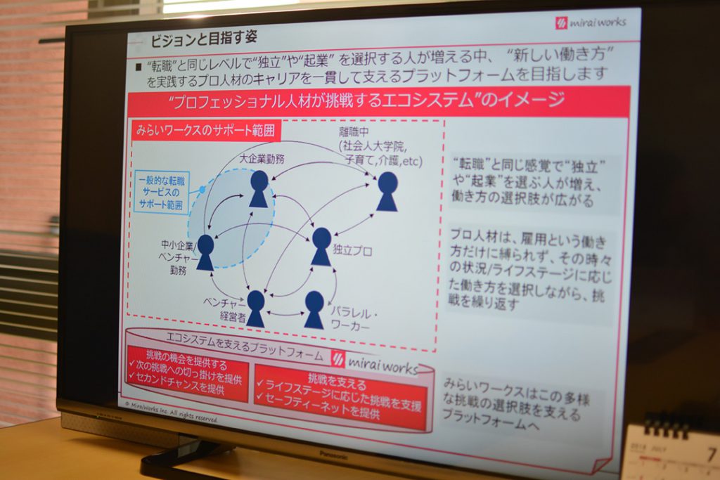 株式会社みらいワークスは、働き方が変わる中で、フリーランスに特化したプロフェッショナル人材と企業を結ぶプラットフォームを構築している会社だ。